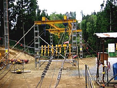 索道架設工事写真(神通川第三発電所ダムゲート修繕工)
