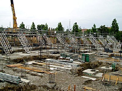 ラク2・タラップ使用現場写真(北日本新聞社「越中座」新築工事)