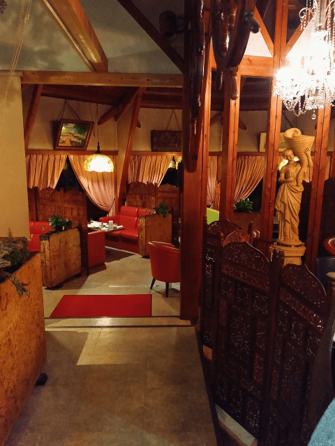 木の温もりが感じられる店内にシャンデリアが輝く、どこか懐かしい雰囲気のお店です。