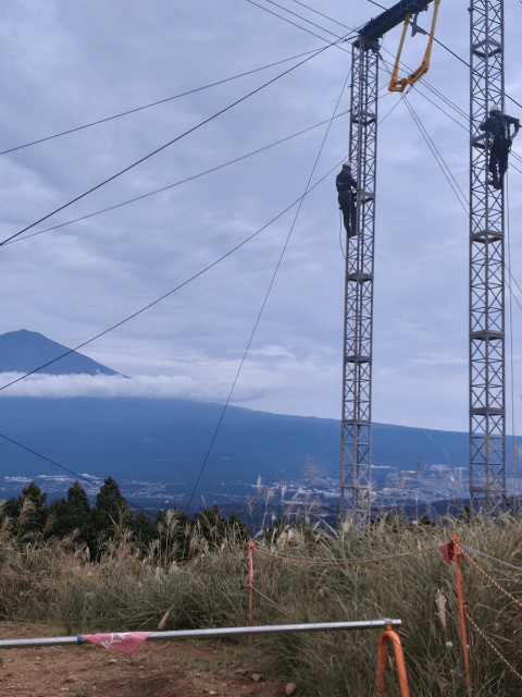 点検当日はあいにくの曇り空でしたが、雲の間からは富士山の頭が顔をのぞかせてくれました。