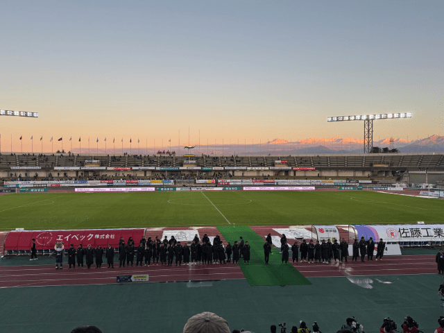 当日のスタジアムは天気にも恵まれ、立山連峰がくっきりと見える最高のコンディション。