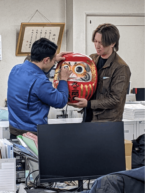 当社では毎年だるまを購入し、年始と年末に目入れを行っています。